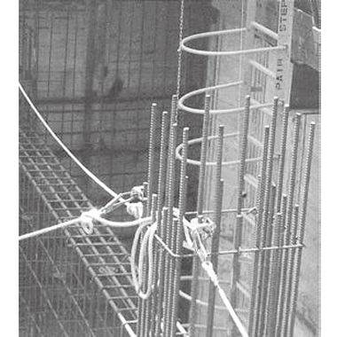 ●柱筋(主筋)や梁筋に金物を取付ける時、フープやスターラップがまだ取り付けてない場合は、親綱設備を使用されても