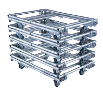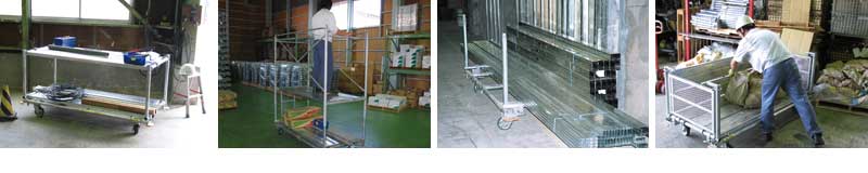 資材を台車に載せて分別格納。楽に管理ができて現場の整理に。そのまま移動で作業効率向上!!