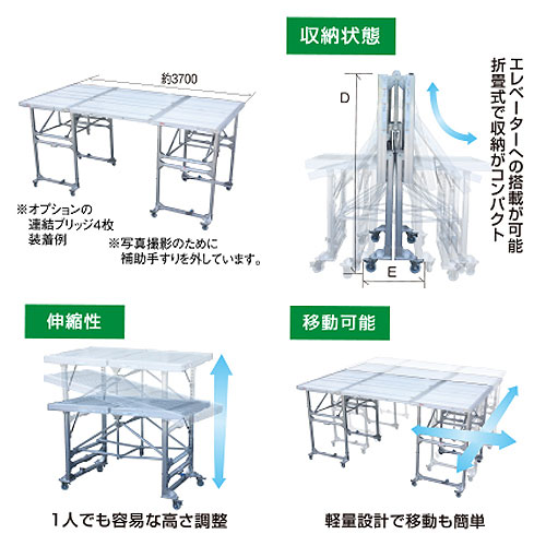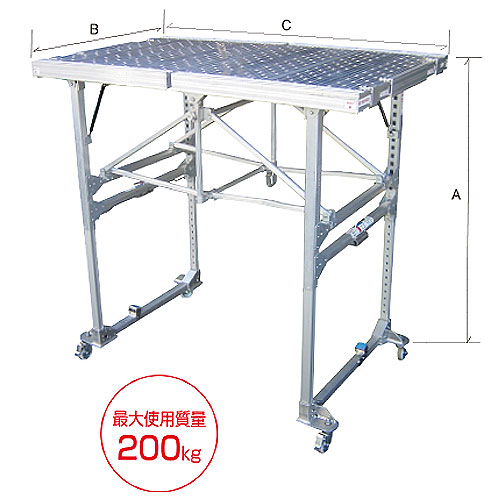 品番 | 天板の高さ(mm) | 天板寸法(mm) | 収納寸法(mm) | 質量(kg) | キャスター | ||