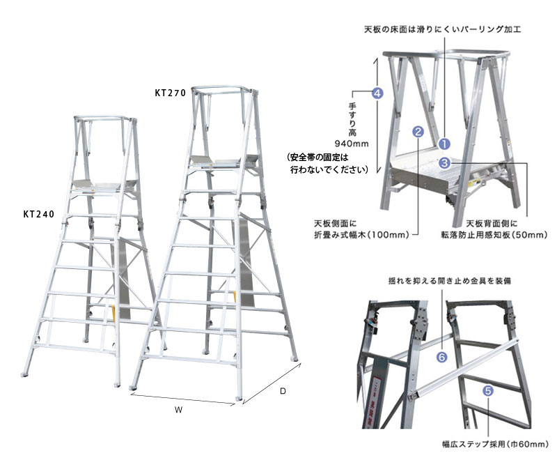 ■脚立と違い天板に乗っての安全な作業が可能です。
