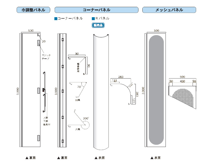 コーナーパネル | 8.0kg(H=3000mm) 5.0kg(H=2000mm) |