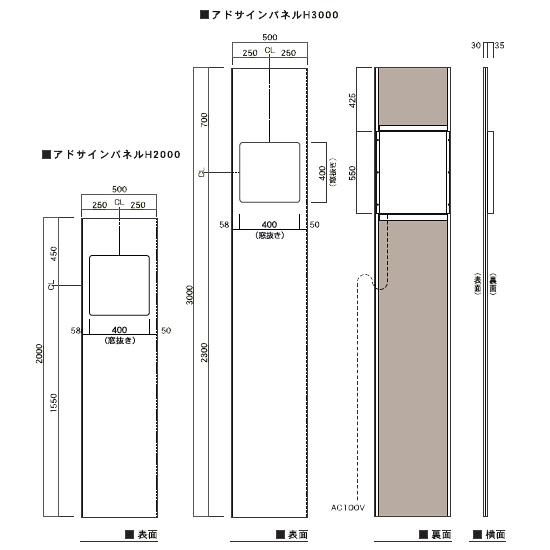 アドサインパネルは出っ張りがなく、歩行者の障害にならないように設計されています。発熱量も少なく、人の手が届くような低い位置に設置しても安全です。