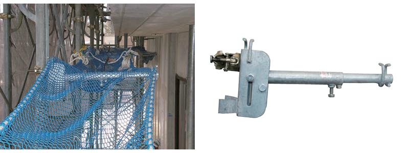 ■鉄骨建方時にワンタッチでネットの取り付けができます。