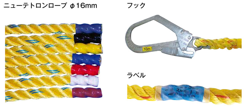 ■ロープの原糸はニューテトロン繊維(特殊加工糸)を使用しており、硬化や寸法の縮みが少ない素材です。